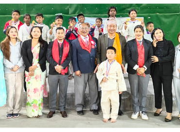 धरान । धरान–१६ स्थित धरान रङ्गशालाको तल्लो खेलमैदानमा सुनसरी जिल्ला जुडो सङ्घद्वारा आयोजित कोशी प्रदेशस्तरीय जुनियर जुडो प्रत ...