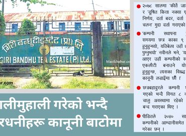 बिर्तामोड (ब्लाष्ट) झापाको बिर्तामोड नगरपालिकामा रहेको ‘गिरीबन्धु टि–स्टेट’ मा एकजना शेयर होल्डर छत्रबहादुर गिरीले हाली–मुहाल ...