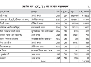 ७५ करोड रुपैयाँको तयारी कपडा आयात