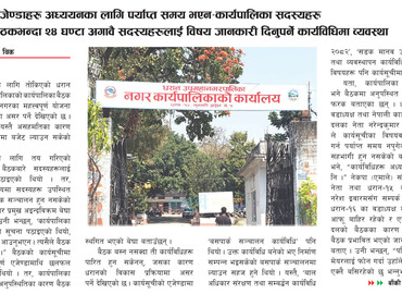 विजयपुर । बुधबारका लागि तोकिएको धरान उपमहानगरपालिकाको कार्यपालिका बैठक स्थगित हुँदा नगरका महत्वपूर्ण योजना तथा विकासमा असर पर ...