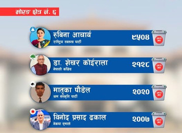 विराटनगर । मोरङ जिल्ला प्रतिनिधि सभा निर्वाचन क्षेत्र नं ६ को मतगणनामा राष्ट्रिय स्वतन्त्र पार्टी (रास्वपा) ले फराकिलो अग्रता ...