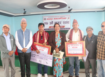 भद्रपुर । भद्रपुर नगरपालिकाले दुई जना पत्रकारसहित विभिन्न खेल विधामा उत्कृष्ट प्रदर्शन गरेका खेलाडीहरूलाई सम्मान गरेको छ । नग ...