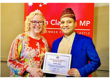 अष्ट्रेलियामा नेपाली युवालाई दोस्रो पटक न्युकासल भोलेन्टियर अवार्ड