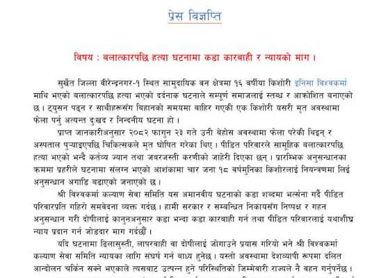 दलित अधिकारकर्मी उमेश विश्वकर्मा राजनीतिक दलले प्रदेश सरकारमा सामाजिक न्यायलाई प्राथमिकता नदिइएको बताए । उनले ७ प्रदेशमध्ये एउटा प्रदेशमा दलितलाई मन्त्री बनाए पनि ६ वटा प्रदेशमा मन्त्री नबनाएको बताए । उनले भने, ‘संविधानले आत्मसात गरेको व्यवस्थालाई दलले उपेक्षा गर्दै आएका छन् । सामाजिक न्याय, समानुपातिक प्रतिनिधित्व देखाउनका लागि मात्रै भयो ।’ उनले बामपन्थीहरूको सरकार बन्दा पनि दलितलाई प्रतिनिधित्व नगराउनु दुःखद् र आपत्तिजनक भएको बताए । उनले दलितले आन्दोलन गर्नुपर्ने अवस्था सिर्जना हुँदै गएको बताए । उनले भने, ‘सबै तहका निर्वाचनमा टिकट वितरणदेखि सरकार गठन प्रक्रियासम्म अन्याय भएको छ । दलितहरू सङ्घर्षमा जानुपर्ने अवस्था आयो ।’